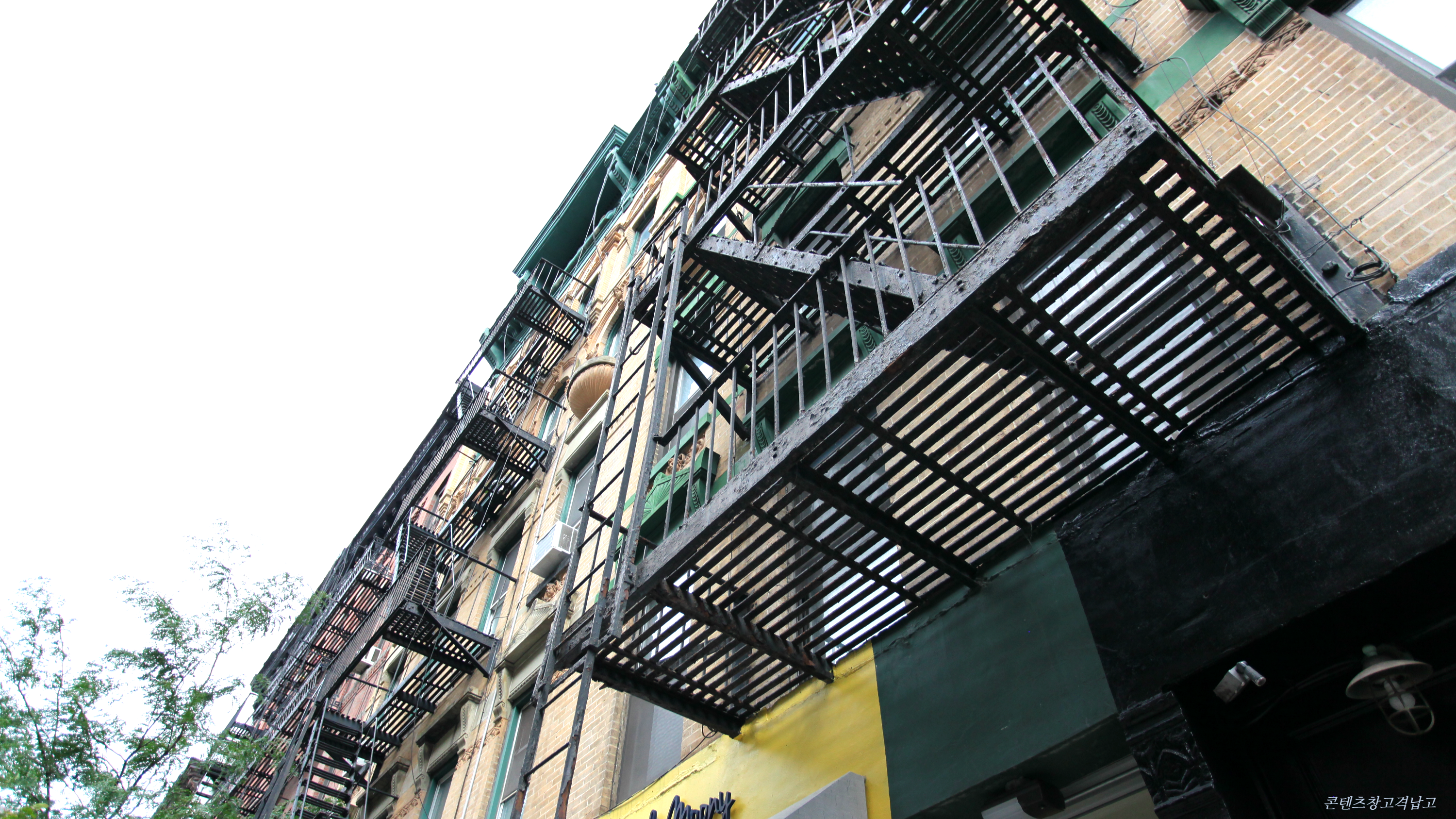 사고가 반복되자 1927년 시는 비상계단을 의무적으로 설치하도록 했다. 구조를 바꾸긴 어려우니 밖에다 다는 경우가 대다수였다. 그 계단들이 지금까지 남아 있는 거다. 물론 나중엔 건축 기술이 좋아지면서 외부가 아닌 내부에 비상계단을 만들고 방화문으로 불을 막을 수 있게 되어 외부의 철계단은 더이상 설치하지 않았다. 1968년에는 외부에 계단을 설치하지 못하도록 법이 바뀌었다. 계단 달린 건물은 1968년 이전에 지어진 건물인 셈이다.