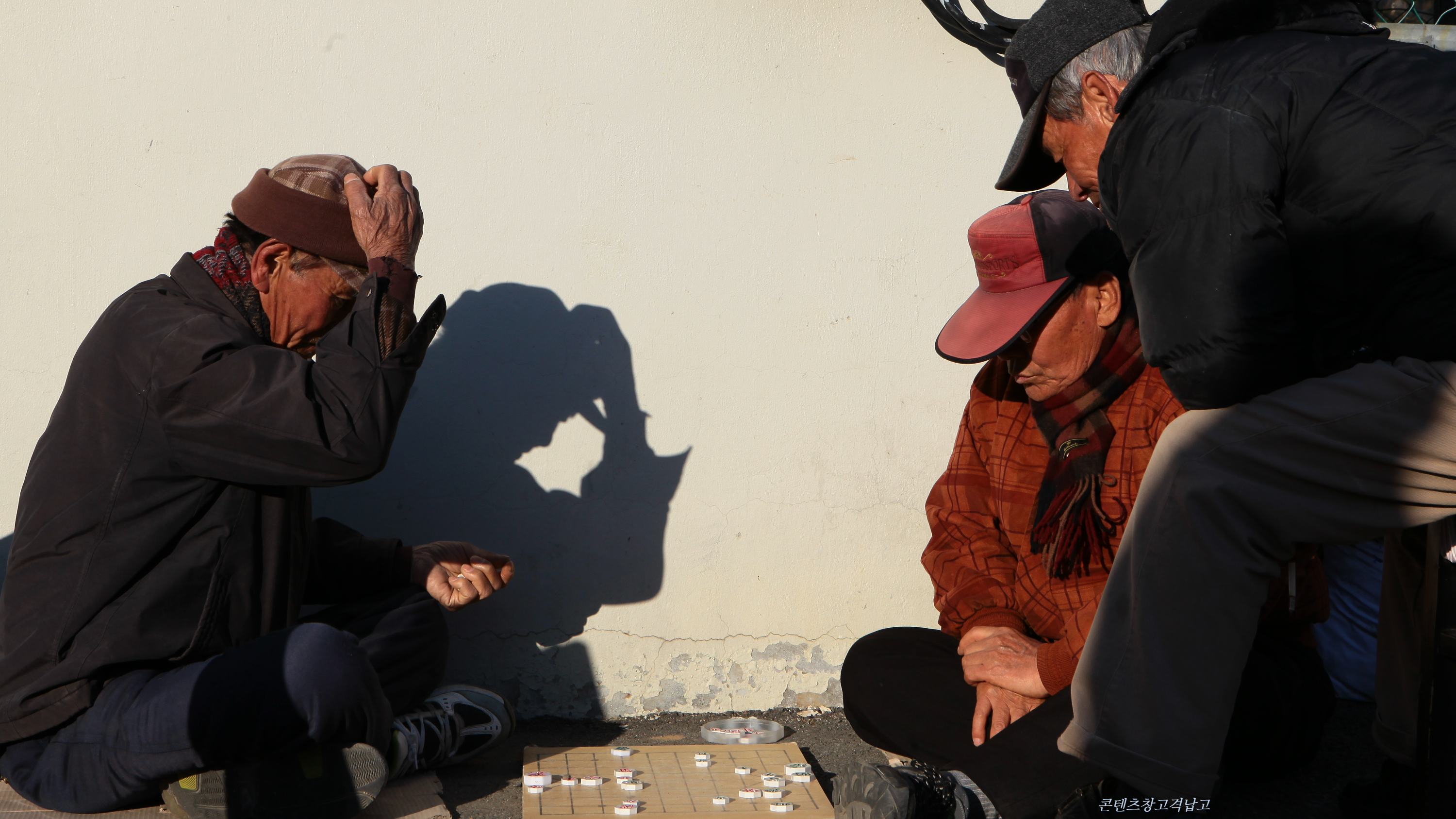 아마도 일로 갔을 때다. 여행기이니 여행을 하면 되지만, 대개는 클라이언트의 요청사항이 있기 마련이어서 돌아보는 곳이 정해져 있다. 가야할 곳을 다 본 다음에 아무런 목적 없이 돌아다니다 통영운하 근처였나 힘들어서 잠깐 쉬는데 볕 좋은 곳에서 장기를 두는 노인들이 눈에 들어왔다.