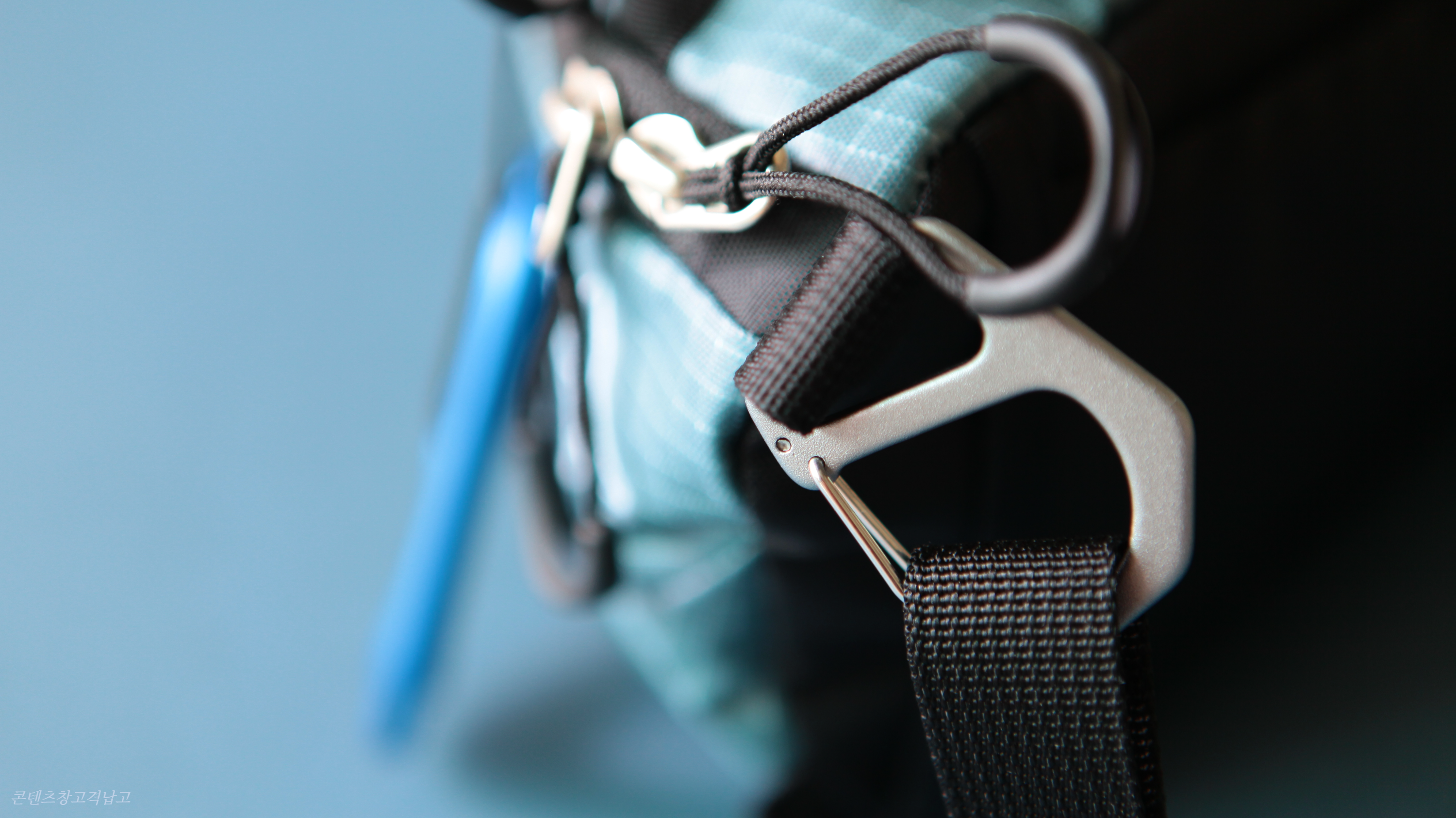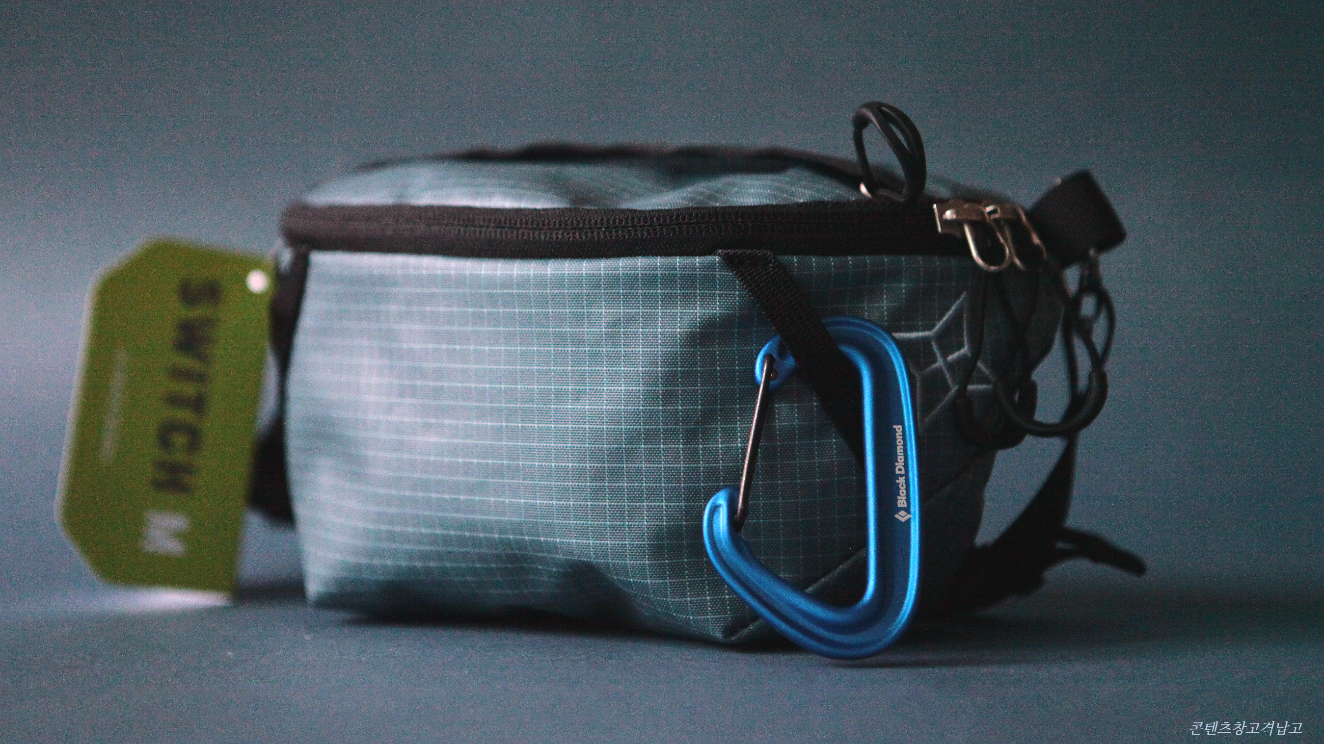 지퍼의 고리가 커서 겨울에 장갑을 끼고도 쉽게 열고 닫을 수 있는 부분도 좋고, 전면에 카라비너를 끼울 수 있도록 한 것도 장점이다. 사진 속 블랙다이아몬드의 파란색 카라비너는 별도로 사서 달았다. 구성품이 아니니 참고.